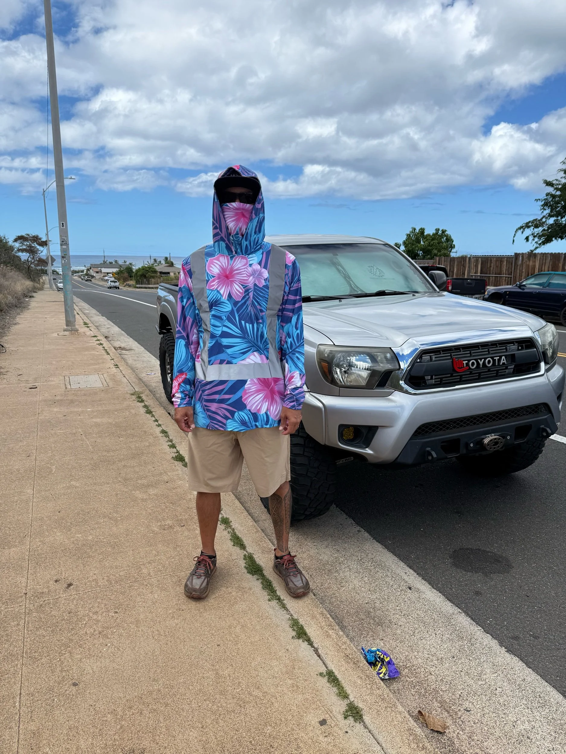 Shop › Hi vis shirt with mask Image 1 of 2 Image 2 of 2 Hi vis shirt with mask $35.00 Runs a size smaller Size: Select Size Small Medium Large 2XL XL 4XL Design: Select Design Tribal Palapalai Black Pink floral Add To Cart Added! Runs a size smaller